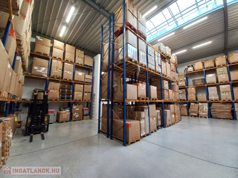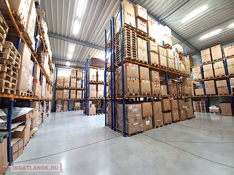 - raktárcsarnok (ö: 396nm) mely 9 m belmagasságú, kamion dokkolóval ellátott, ipari beton padló borítású, 4 szintes raklapok tárolására alkalmas állványrendszerrel ellátott