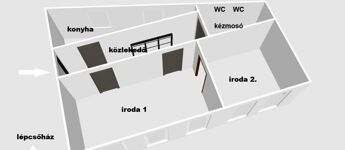 2 db iroda, vizesblokk, közlekedő.