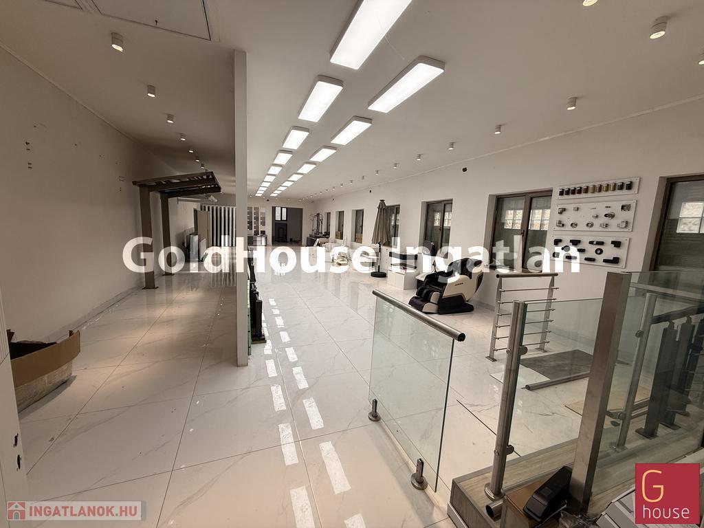 Az ingatlan egyik kiemelt része a közel 200 m²-es bemutatóterem, amely ideális ügyfélfogadásra, termékbemutatókra vagy reprezentatív üzleti eseményekre.