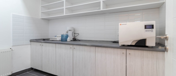 Rendelkezésre áll a további 5 rendelővel közös használatú sterilizáló helyiség, röntgen helyiség, valamint személyzeti öltöző és teakonyha.