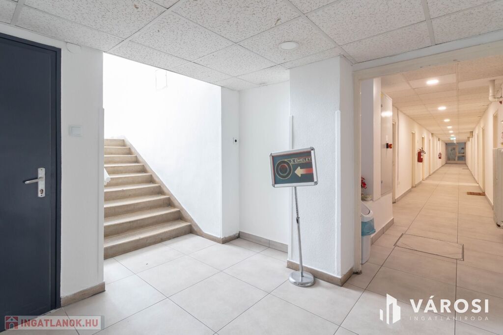 A 3 emeletes irodaépületben felújított elektromos hálózat és műanyag nyílászárók adják az irodák modernizált hátterét.