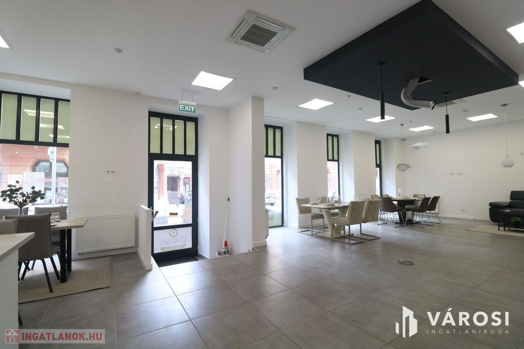 Szeged belvárosában a Feketesas utcán, utcafrontos, kirakatos, 155 nm-es impozáns üzlethelyiség TULAJDON JOGA eladó.
