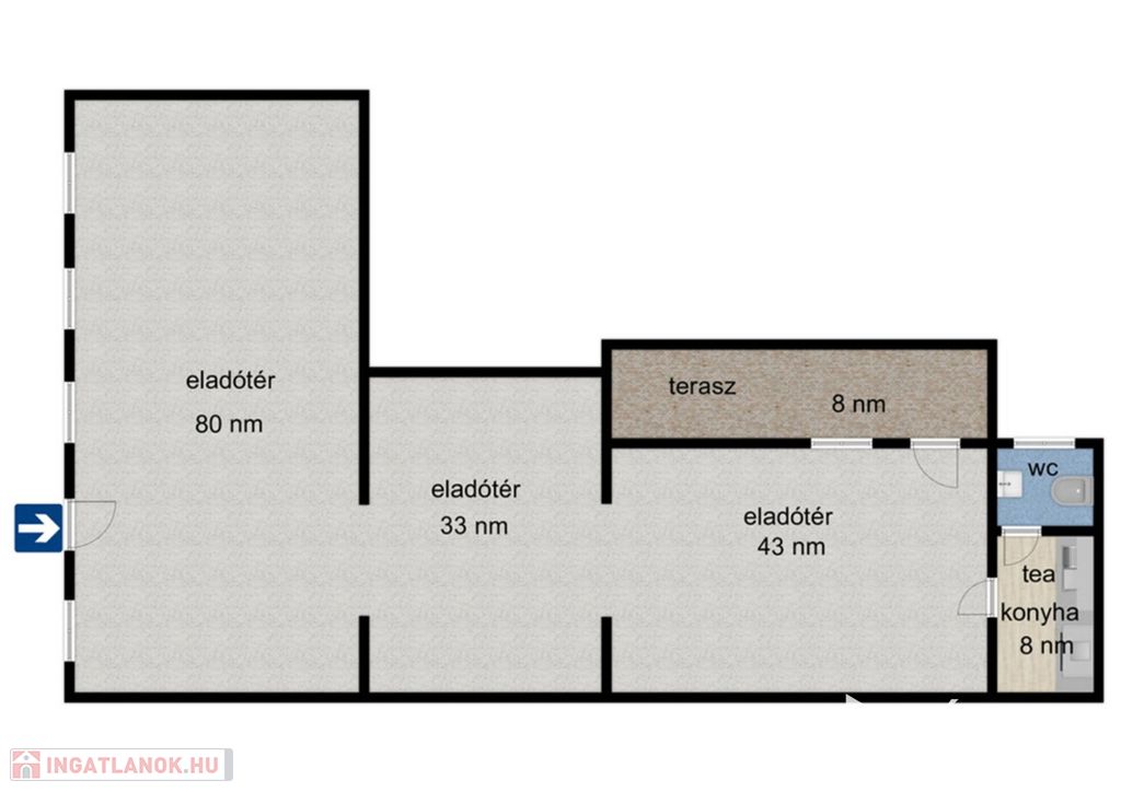 Alkalmas lehet akár üzlethelyiségnek, irodának, szolgáltató egységnek, szinte bármely követelménynek megfelelő lehet.