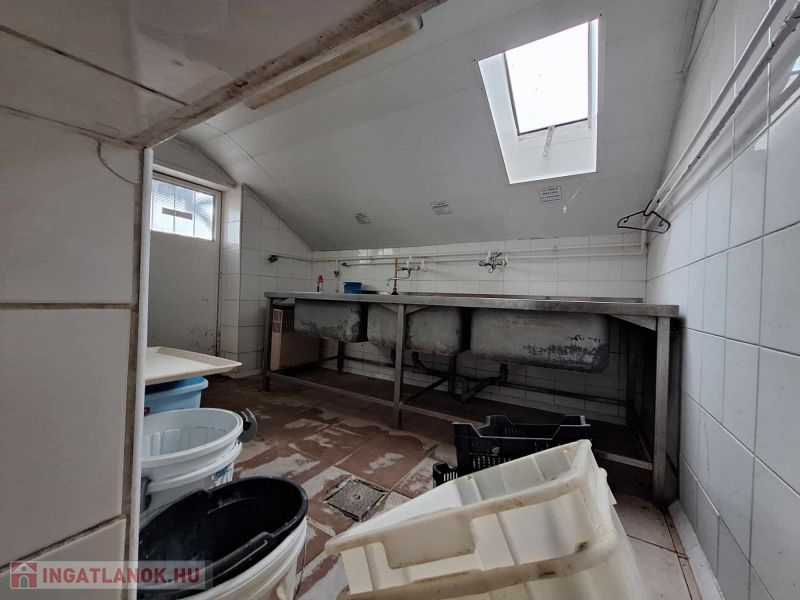 Férfi női öltöző,fürdő,mellék helyiségek,étkező találhatók.A létesítmény az európai szabályoknak megfelel, működési engedéllyel rendelkezik, azonnal birtokba vehető - hűtő - hűtött tároló, - orvosi szoba, - öltözők, szociális helyiségek, - göngyölegmosó, - vágóállat fogadására alkalmas helyiség, - teherautó fogadására alkalmas fedett rész, - kültéri parkolók, -öltöző, Ez egy jó lehetőség arra, ha vállalkozni vagy bővíteni szeretné vállalkozását. Az ár irányár!