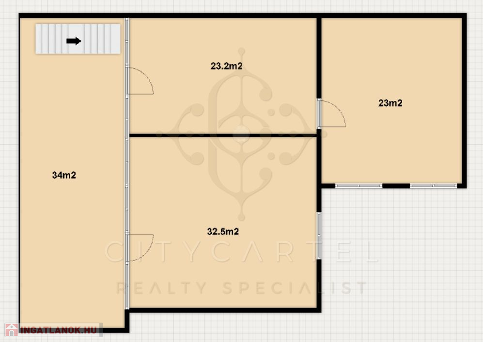 Pince: 72 nm – konyha, öltöző, tároló, 2 toalett