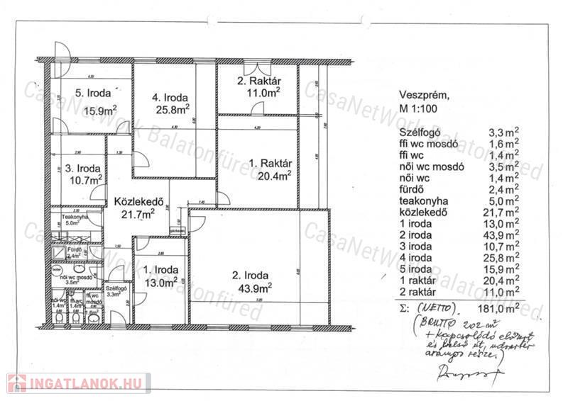 - jelenleg 7 nagyobb helyiség (iroda, raktár) 1 konyha +étkező , fürdőszoba és női, férfi wc kapott helyet az épületben