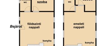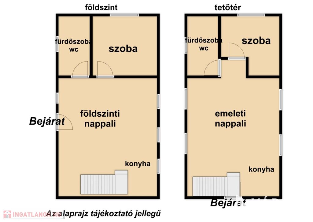 A lakóház mindkét szintjének külön bejárata van, de belül egy lépcső is összeköti őket.