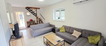 Az ingatlan bútorozva és gépesítve kiadó. A telekre autóval be lehet állni, a ház bejárata előtt egy kisebb kert áll a bérlők rendelkezésére.