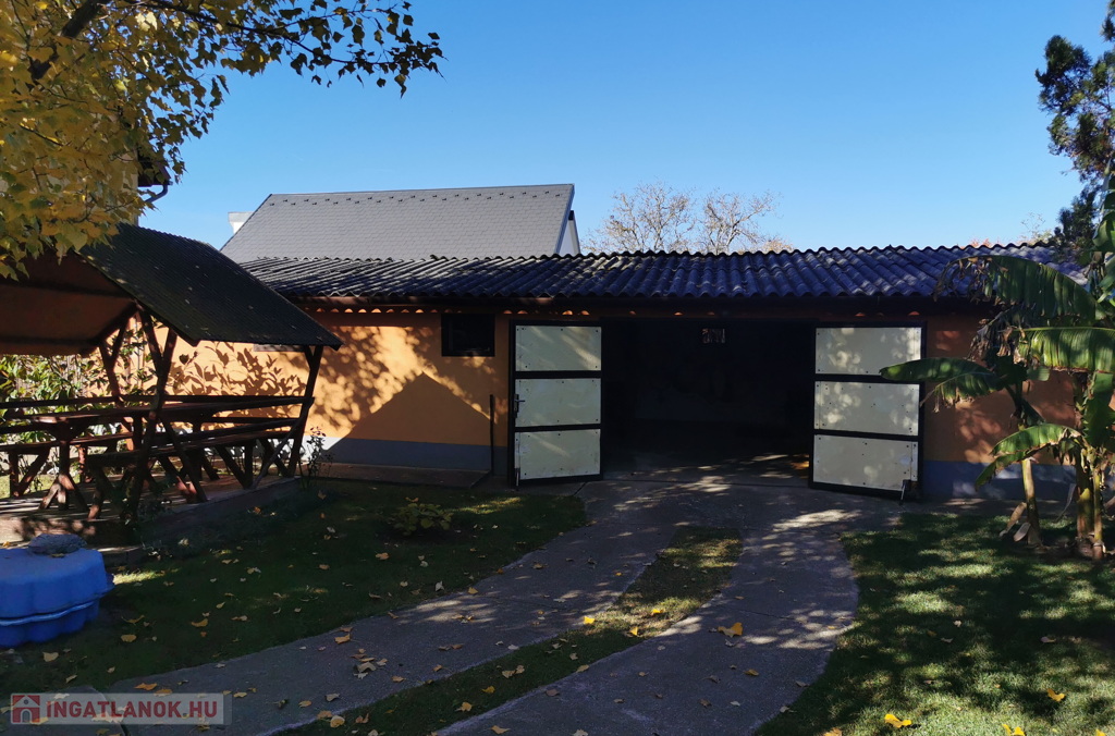 Garázs: 1 + 1 gépjármű részére 28 m2,és 86 m2. Első garázsban 4 m2-es verem