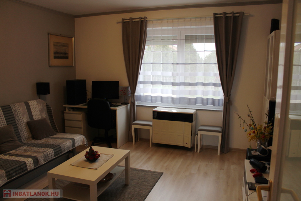 Kert: parkszerű kert 670m2 (22x33,5 m) rendszeresen karbantartott és sokat ápolt füvesített,