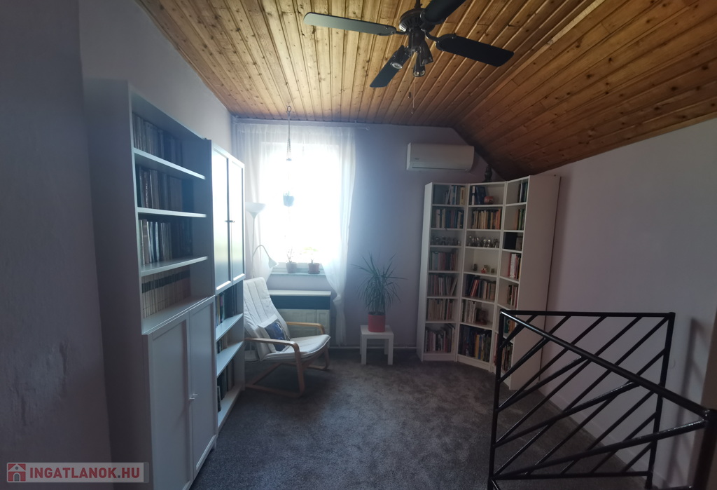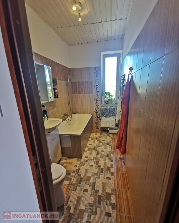 közlekedő 4,9 m2, kádas fürdőszoba WC-vel 4,5 m2, közvetlenül a tető alatt 3 tárolóhelység van: 1. 5,4 m2, 2. 8,6 m2