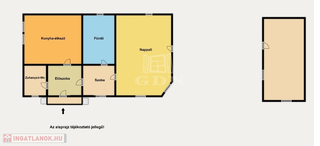 Az ingatlan 75 nm , 2 szobából, 2 fürdőszobából, egy hatalmas konyhából, és előszobából áll.