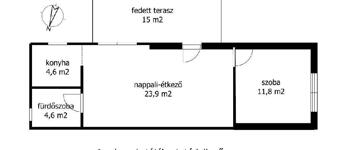 A lakóház nettó alapterülete 45 m2, a fedett terasz pedig 15 m2.