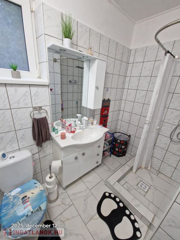 Győrtől mindössze 30 perc távolságra, Bakonyszentlászló központjában, 1917m2-es telken, 103m2 lakóterületből és 28m2es garázsból álló, 3 szobás, 2 fürdőszobás családiház eladó. Az ingatlan két éve több felújításon eset átt. Úgy mint külső homlokzati hőszigetelés, födém szigetelés, nyílászárók cseréje, elektromos hálózat cseréje, hideg és meleg burkolatok cseréje, csatorna és vízhálózat cseréje, új konyhabútor, beépített gépekkel, amik a vételár részétn képezik. A ház fűtéséről egy kondenzációs gázkazán gondoskodik, radiátor hőleadókkal. E mellett rendelkezésre áll egy vegyes tüzelésű kazán illetve egy hűtő-fútő klíma is. A nagy teleken található egy ásott kút, borospince, állattartásra alkalmas ólak valamint a kertben kb. 50 darab gyümölcsfa.