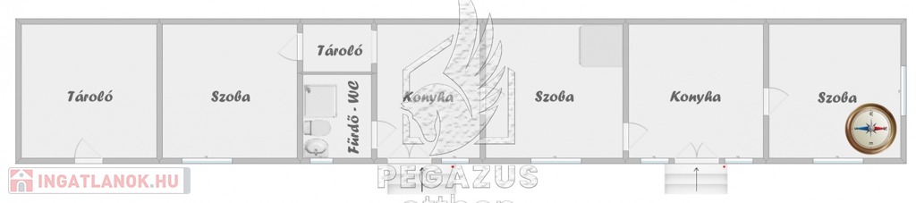 Az ingatlan belső elrendezése rendkívül flexibilis: öt nagy helyiség található benne, amelyek közül kettő akár konyhának is alkalmas – ez lehetővé teszi a kétgenerációs együttélést, vagy egy különálló vendéglakrész kialakítását is. A kényelmes bejárást két külön bejárat szolgálja. Egy kisebb, de funkcionális zuhanyzóval ellátott fürdőszoba áll a lakók rendelkezésére.