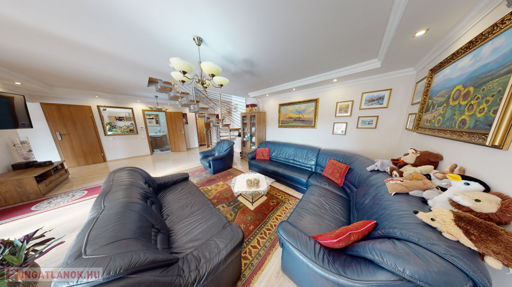 2 szinten: 4 hálószoba, 2 konyha, nappali, fürdőszoba, WC, beépített gardróbok, kamra