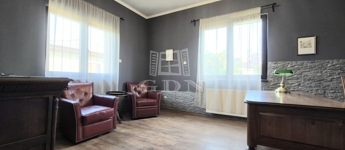 A nagy, élhető terekkel rendelkező ingatlan bővelkedik a jókora üvegfelületekben amik roppant világossá teszik a letisztult belsőt.