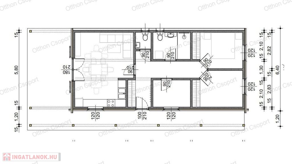 -Ház hasznos alapterülete 71,19 m², (össz-alapt.: 114 m²), terasz: m²,