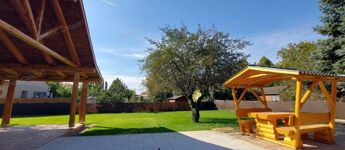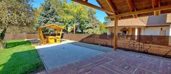 - A telek 715 m², udvari beállóval, szaletlivel, térkövezés, gyepszőnyeg
