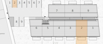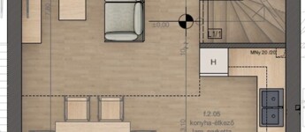 Fűtése 9,5 KW-os hőszivattyúkról ,padlófűtés, használati meleg víz és lakásonként 2db beltéri klíma egységek is erről üzemelnek.