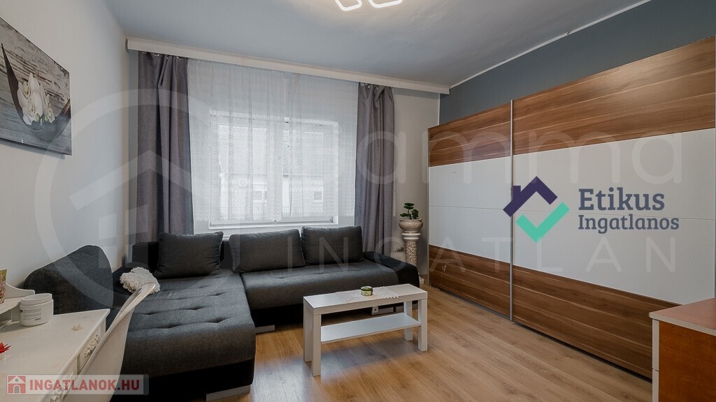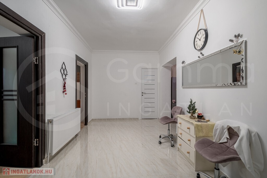 - Belső burkolatok: Frissen festett falak, a szobákban új laminált padló, a többi helyiségben járólap található. A vizesblokkok részben csempézettek.