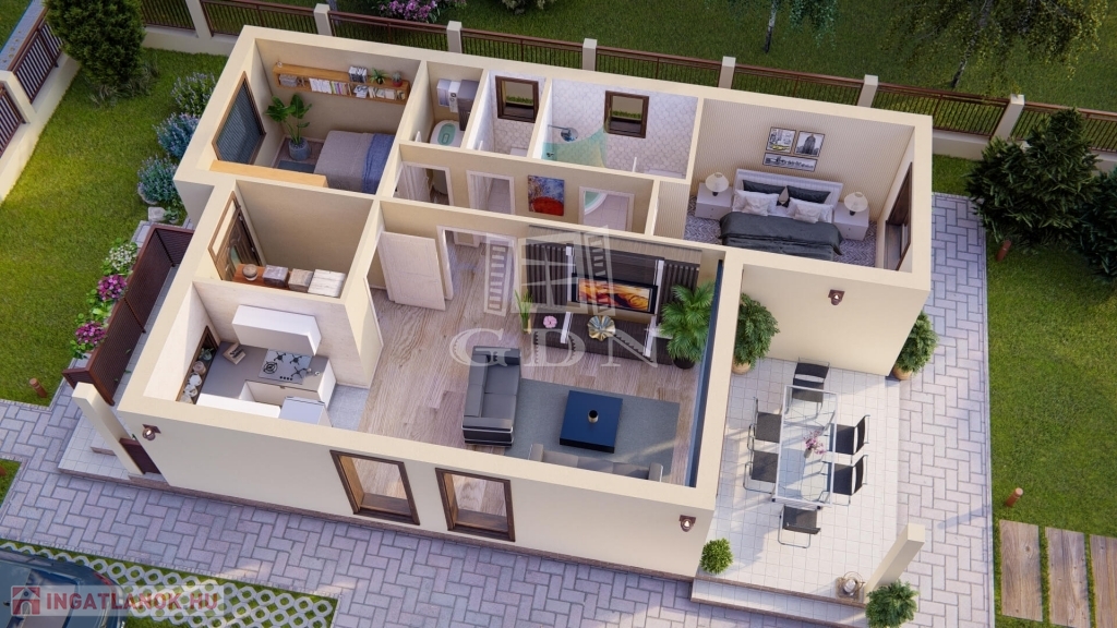 fürdő, Wc, nappali, konyha stb). Minden helyiség külön