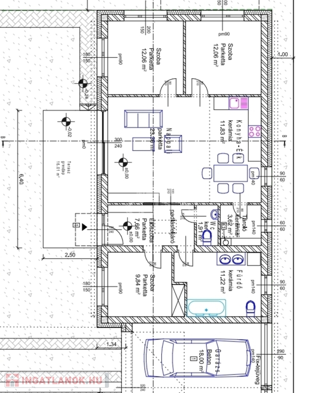 - Felosztás: amerikai konyhás nappali 35 nm, 3 teljes értékű szoba, fürdőszoba+wc (sarokkád, zuhanyzó, dupla mosdó), wc külön, kamra, előszoba.