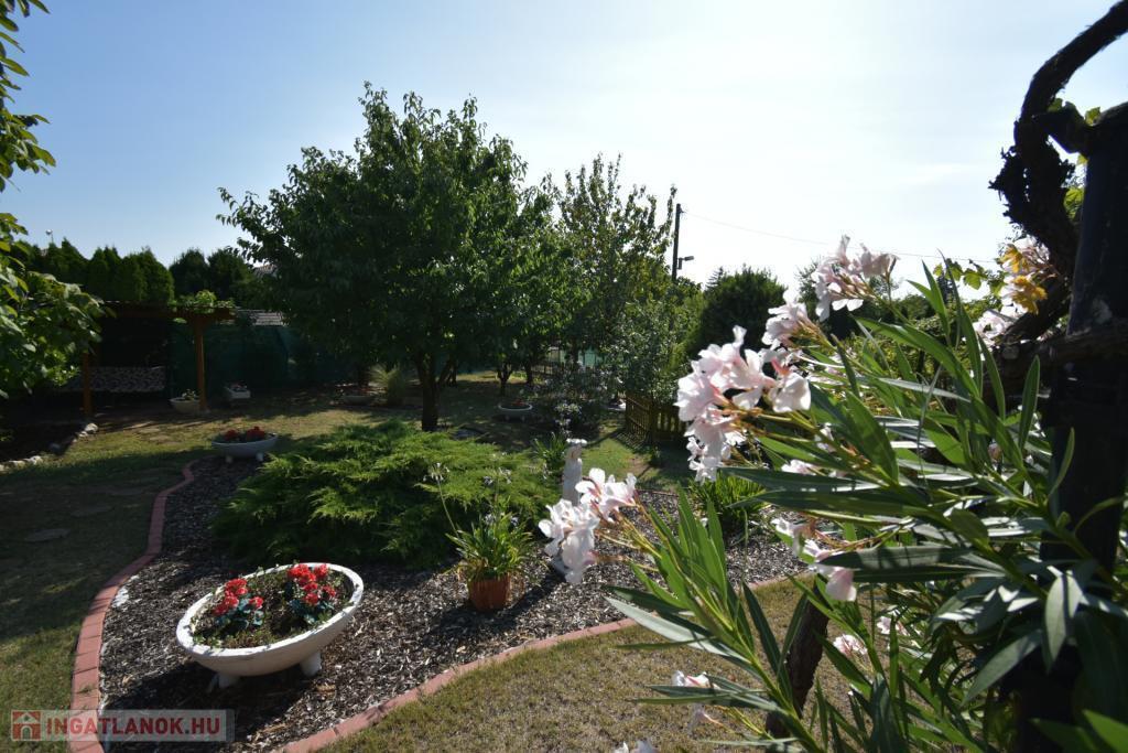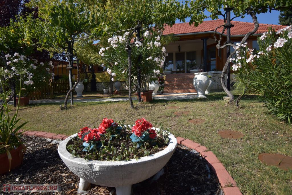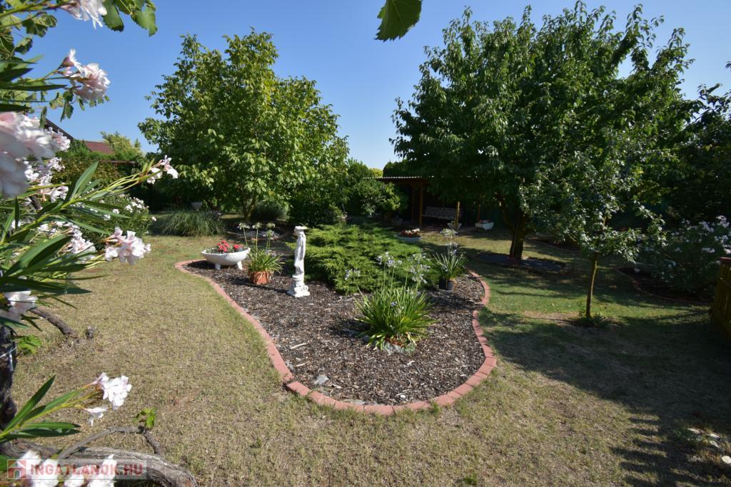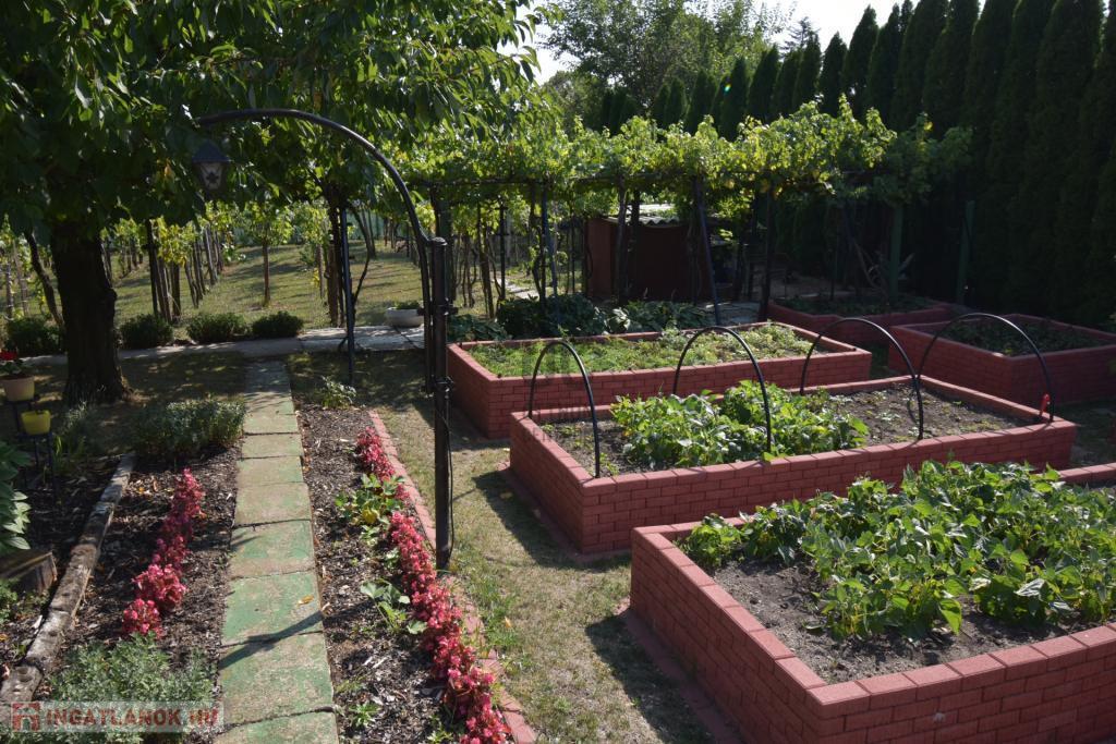 A kert szépsége gondos kezek munkáját dicséri, sok virágzó növény és számos gyümölcsfa is telepítésre került a magaságyásokkal együtt.