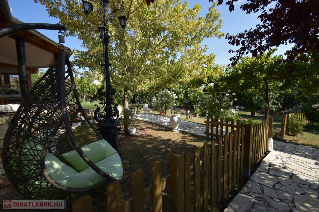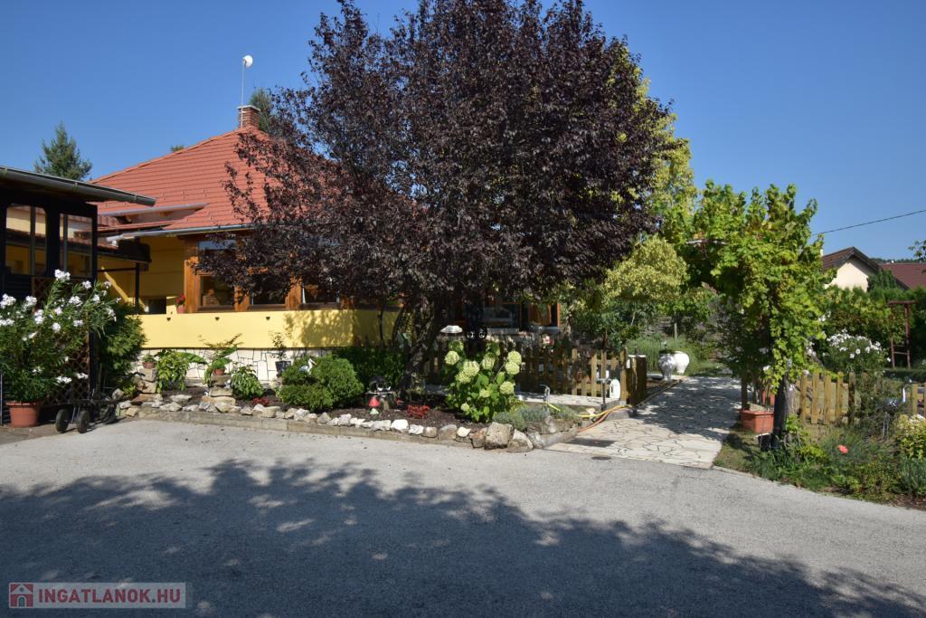 Az udvaron több gépkocsi számára kialakított parkolóhely áll rendelkezésre, a fúrt kút pedig megkönnyíti a kert gondozását.