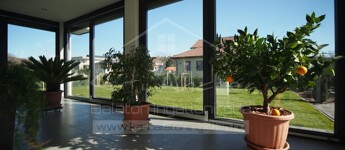 A beépített, négy eltolható, háromrétegű nyílászáróval zárt terasz zsaluziás árnyékolással ellátott, így szinte egész évben élvezhető, exkluzív átmeneti életteret biztosít.