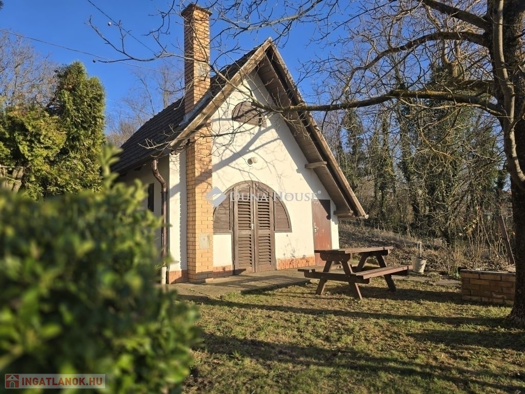 Panorámás zártkerti telek kis házzal eladó Gyódon, Pécstől 5 km-reGyód felső részén, a napos fennsíkon eladó egy 700 m²-es, panorámás, zártkerti telek egy kb. 20 m² alapterületű, belső kétszintes gazdasági épülettel, mindössze kb. 5 km-re Pécstől.Az épület 1985-ben épült, karbantartott állapotú. Nem lakóingatlanként használták, de felújítással akár állandó lakhatásra is alkalmassá tehető, a környéken többen életvitelszerűen laknak.Az alsó szinten konyhaétkező, wc kézmosóval, valamint egy könnyen megközelíthető pince található (csak egy lépcsőfok vezet le). A felső szinten két egymásból nyíló helyiség van, amelyek szobaként használhatók.A telek körbekerített, két utcáról is megközelíthető, aszfaltos úton elérhető, hivatalos házszámmal rendelkezik (Mezőszél utca 38). A terület lejtős, nyugati tájolású, így napos és szép panorámával rendelkezik.A telken vezetékes víz van a házban, ami a zártkerti ingatlanoknál külön előny. Gáz a telken belül megtalálható, jelenleg kályhával fűthető az épület. Emellett kerti csap, ciszterna, ülepítős szennyvízmegoldás, pince és egy kisebb szerszámtároló is tartozik az ingatlanhoz.Ideális választás lehet hétvégi háznak, kertészkedéshez vagy felújítás után akár állandó lakhatásra is.A terület művelés alól kivont,így azonnal birtokba vehető.További kérdéseivel és személyes megtekintésért várom hívását,akár hétvégén is!