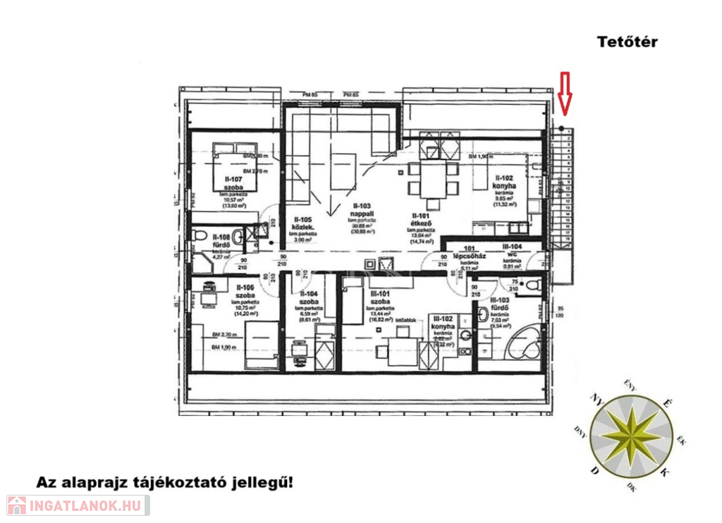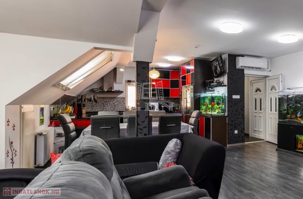 A tetőtérben 2 ÖNÁLLÓ LAKRÉSZ kapott helyet: egy 25 nm-es GARZON, illetve egy NAGYMÉRETŰ, 3 HÁLÓSZOBÁS amerikai konyhás lakás, együttesen 130 nm-es területen. Minden szoba INVERTERES HŰTŐ-FŰTŐ KLÍMÁVAL felszerelt, a külső lépcsőterasz pedig önálló bejáratot biztosít.