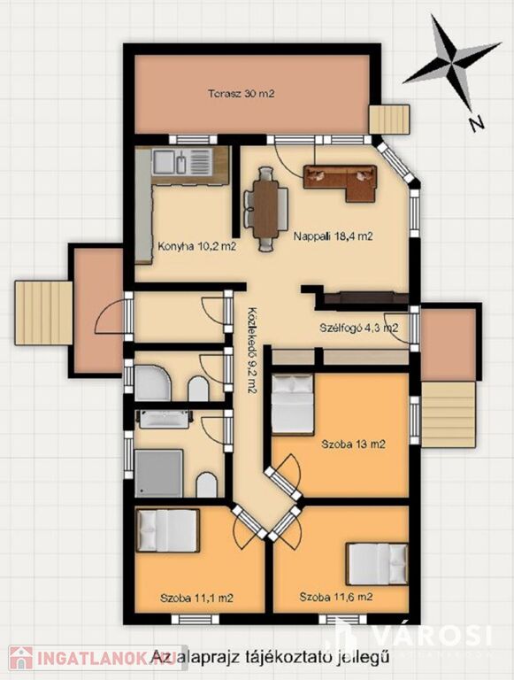 • Elosztás: amerikai konyhás nappali + 3 szoba