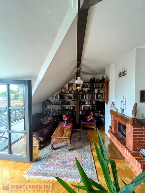 A ház felső szintjéről csodálatos panorámát élvezhet a tulajdonos, főleg a tágas nappaliból nyíló, nagy méretű erkélyről. Érdemes bejárni a házat, a felső nappali nagyon-nagyon hangulatos és fényes.
