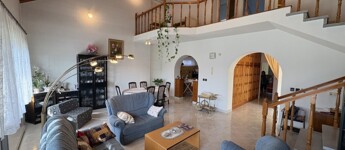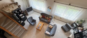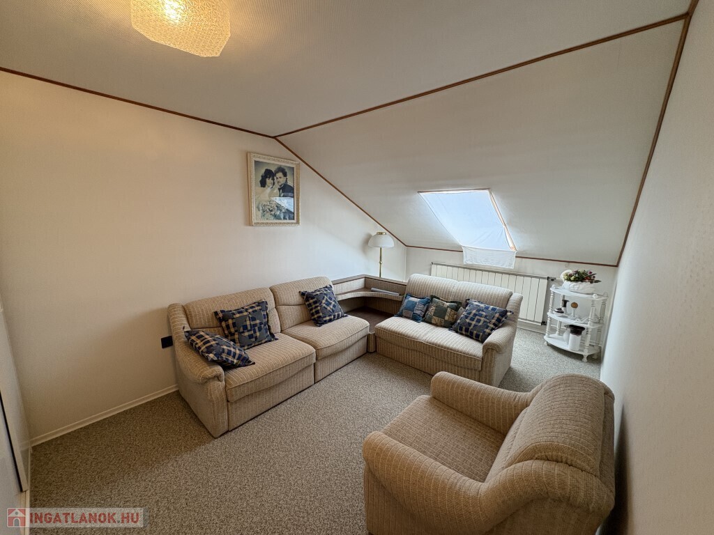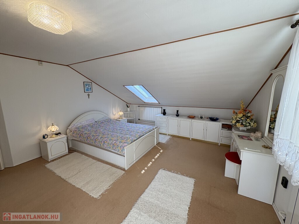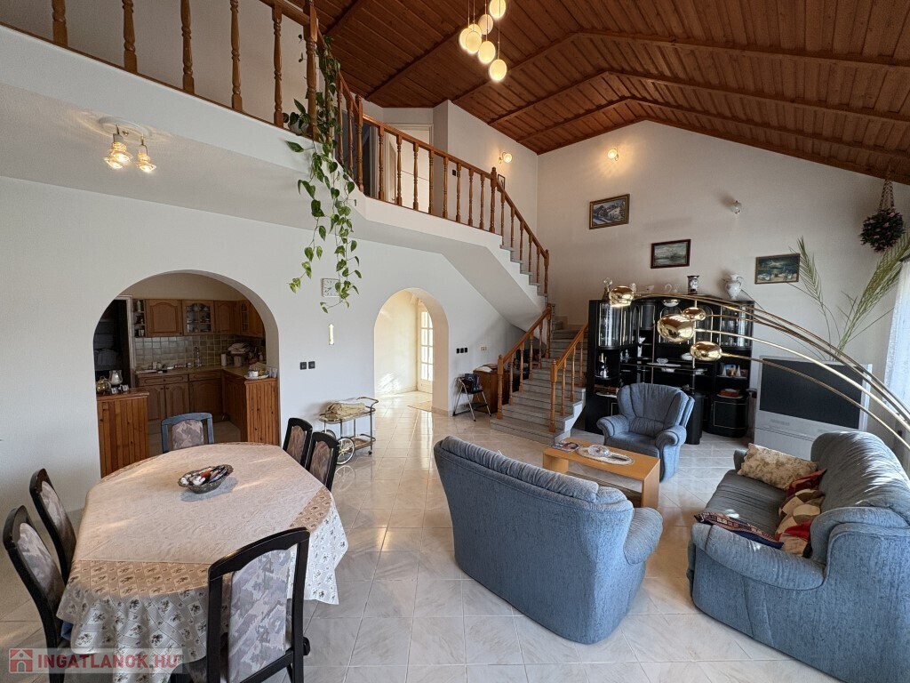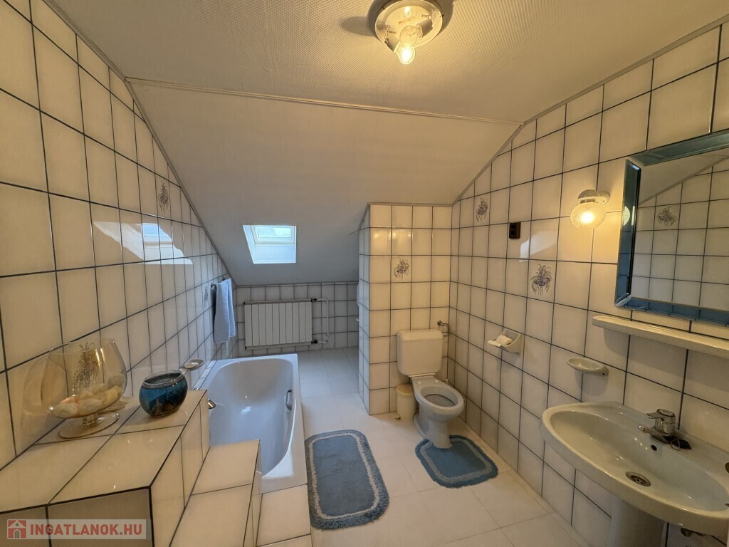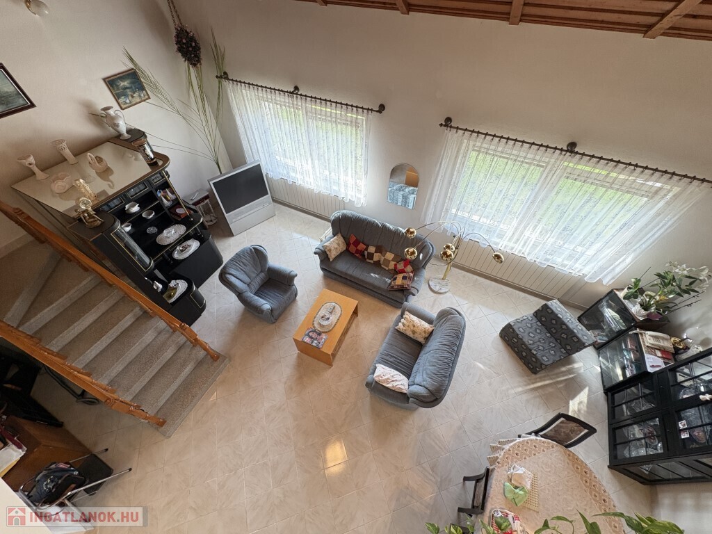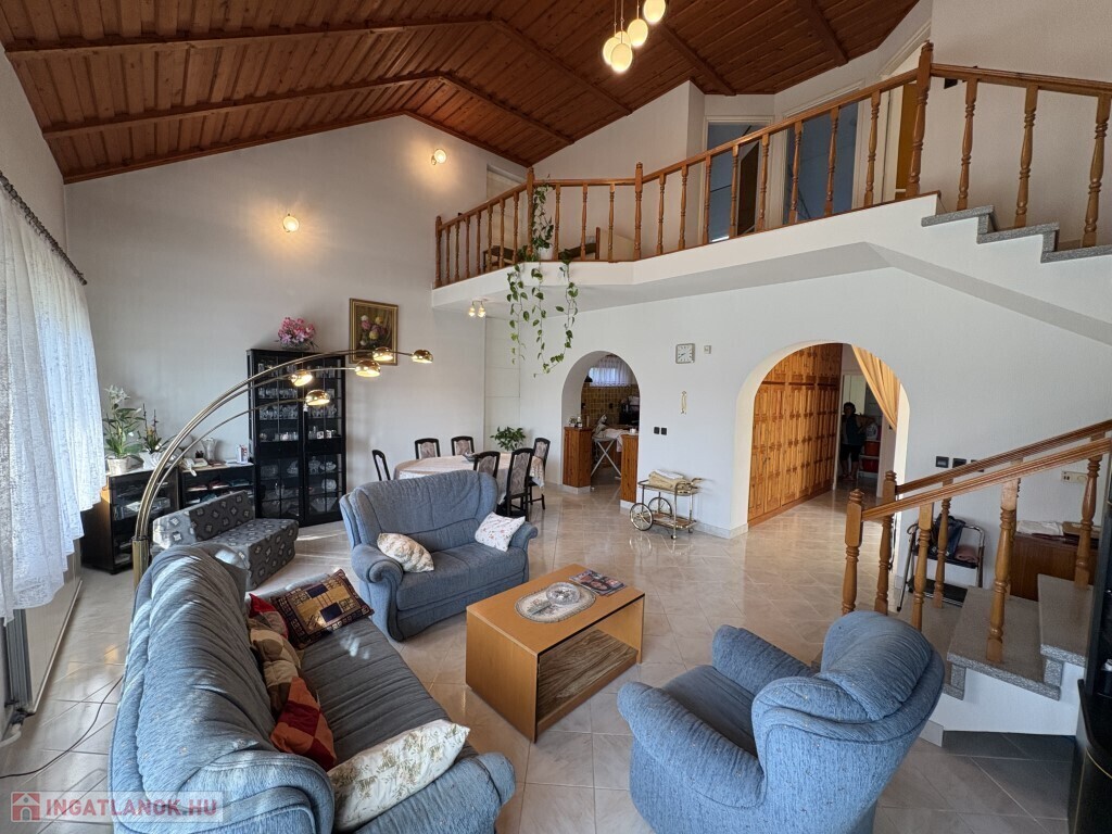 Hetesen - Kaposvártól kocsival 15 perc távolságra, csendes utcában - 1988-ban épített 202 m2-es családi ház, a képeken látható műszaki állapotban, gondozott udvarral eladó. A lakóházban az alsó szinten nagyon szép világos, galériázott tágas nappali étkezővel, konyha, kamra, előszoba beépített szekrénnyel, fürdőszoba-zuhanyzó, wc, valamint üvegezett nagy terasz találhatóak. A tetőtérbe a nappaliból vezet fel feljárat, ahol 2 szoba, fürdőszoba-wc és egy - a nagyobb szobából nyíló - erkély kerültek kialakításra. A szuterénbe a lakóházból és külön lejárattal is is le lehet jutni, ahol partyszoba mosogatóval, előtér, kazánház helyiségek találhatóak. Az udvarban 1 személyautó részére tágas garázs, pince, valamint 40 m2-es nyári konyha, kamra épület található, amelyben mosókonyha, illetve wc-kézmosó helyiségek is találhatóak. A telek széles, a kertben kisebb gazdasági épületek, szőlő és gyümölcsfák vannak. Telek: 3.045 m2. Amennyiben az ingatlan felkeltette az érdeklődését, kérem hivatkozzon a 238. számú ajánlatra! Irodánk címe: Kaposvár Irányi D. u. 9.