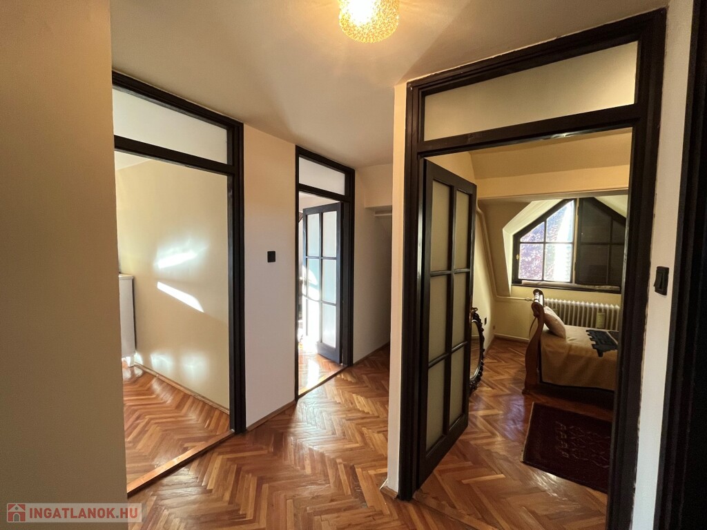 Kaposvár legkedveltebb városrészének egyik csendes utcájában található 145 m2-es polgári stílusú, elegáns családi ház eladó. Az 1900-as évek elején épült lakóház földszintjén a teraszról nyíló tágas előtér van amelyből nyílik a konyha. Az előtérből tovább haladva belépünk az elegáns nappaliba, amelyben térelválasztó üvegajtóval 1 szoba került kialakításra. Az előszobából nyílik továbbá a polgári stílushoz kialakított ebédlő, valamint zuhanyzó, wc a lépcső feljárat a tetőtérbe és a pincelejáró. A tetőtérben 3 szoba került kialakításra, ebből 2 szobának közös erkélye is van, valamint az előtérből nyílik a fürdőszoba-wc, továbbá egy kis tároló helyiség is. A szuterénben akár borozónak, vagy partyszobának, esetleg fittness szobának használható helyiségek találhatóak, valamint itt kapott helyet a kazánház és egy kis tároló is. Az épület fűtése gázközponti fűtéssel - Viessmann gázkazánnal - valamint a nappaliban található cserépkályhával megoldott, továbbá riasztó is felszerelésre került. Az udvarban nagyon kényelmes kocsibejárat vezet be, tovább 1 személyautó részére garázs és tároló van. Telek: 411 m2