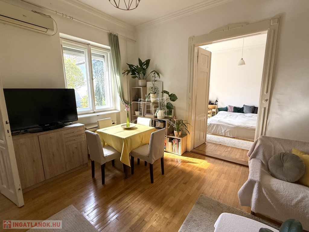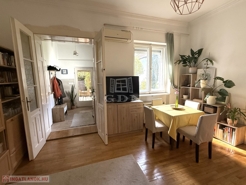 Kecskemét, Máriavárosban, kiváló elhelyezkedésű, kertvárosi részben 230 nm telken, polgári jellegű, nettó 60 nm, 2 nagy szobás házrész eladó. Tágas, világos terek, nagy belmagasság, remek elrendezés. Néhány éve a fürdőszobát, konyhát, villany és vízvezetékeket felújították. A ház a telek belső felében helyezkedik el, saját, tervezett 110 nm csodálatos kerttel, sok, különleges növénnyel. 10 nm fedett terasz és 2 db kisebb külső tároló is tartozik a házhoz. Csendes, nyugodt környék, kiváló lokáció, minden karnyújtásnyira, tömegközlekedés, bevásárlási lehetőségek, üzletek, étterem.