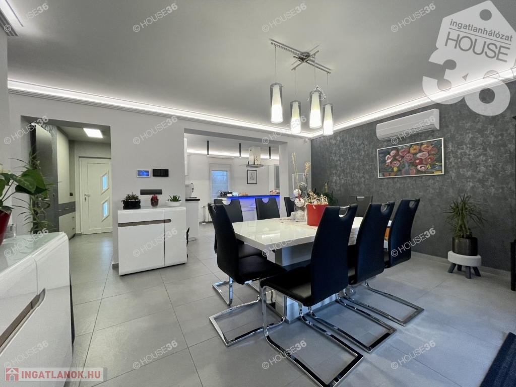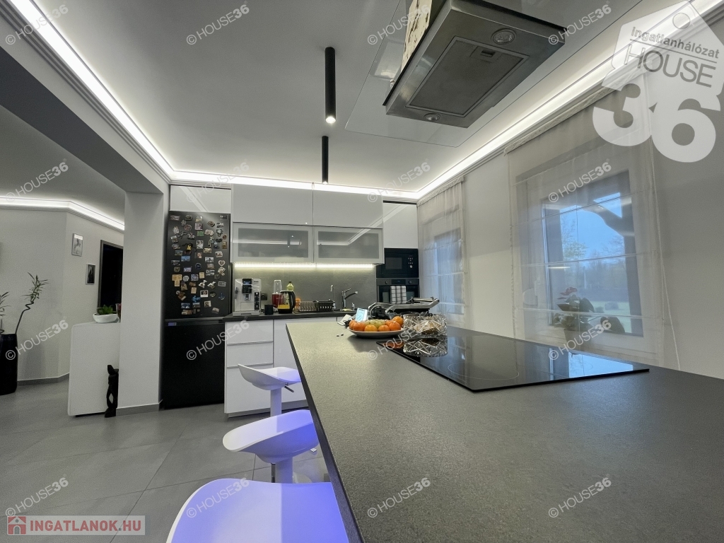 Kecskeméten, Belsőnyír kedvelt részén, 2002-ben épült, de 2018-ban újjágondolt és átépített, luxus minőségű, 4300 m2-es telken, 239 m2-es, nappali+ 4 szoba+ 2 fürdőszobás, minden igényt kielégítő családi ház számtalan extrával eladó!