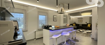 -egyedi magasfényű konyha minőségi gépekkel, konyha szigettel