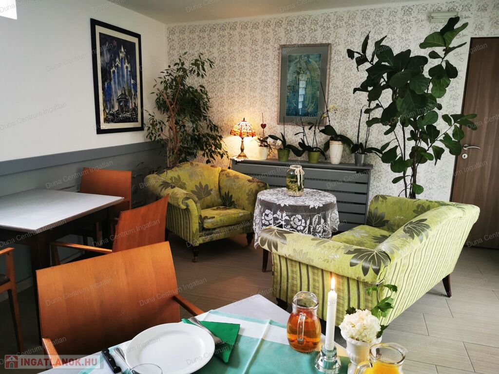 Rendkívül igényes, minőségi anyagokkal felújított, családias panzió-villa kilenc apartmannal, berendezett étteremmel és egy 70 mn-es lakással eladó. A szobák ízlésesen berendezettek, kényelmesek. A fűtés gázkazánnal, illetve kiépített fan-coil rendszerrel, míg a melegvízellátás napkollektoros rásegítéssel megoldott. Az étterem alkalmas melegkonyhás üzemeltetésre .A villához rendezett udvar, térköves parkolók tartoznak.  A panzióra jellemző a meghittség, nyugalom, a kényelem. Igazi kikapcsolódást nyújt a pihenni vágyóknak.