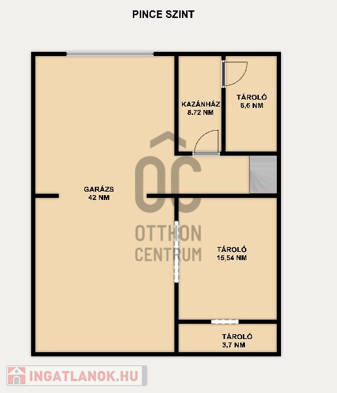 - pince szint: dupla garázs + aknával, kazánház, tárolók összesen 70 nm