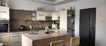 Az alsó szinten amerikai konyhás nappali, az emeleten 2 külön nyíló szoba és 2 fürdőszoba található./ a két szinten/