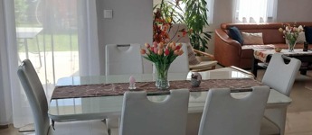 Az ingatlanban a tágas, világos terek és a minőségi kivitelezés harmóniát teremtenek, miközben a hőszivattyús padlófűtés és a H tarifa gondoskodik az alacsony rezsiről és a kellemes hőmérsékletről egész évben.