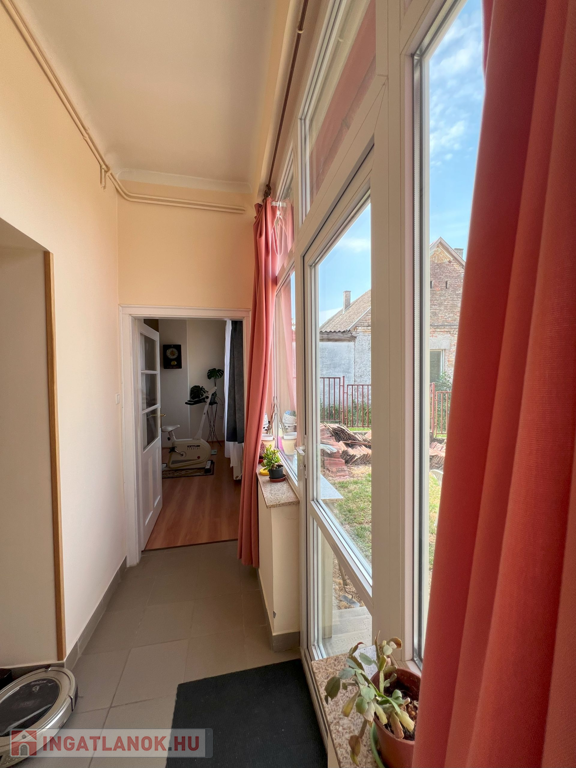 Az ingatlan jellemzői: Az ingatlan alapterülete 100 m², jól átgondolt elrendezéssel: egy világos nappali, egy tágas hálószoba, valamint egy kisebb helyiség, amely jelenleg dolgozószobaként funkcionál. Emellett egy nagy méretű konyha, zuhanyzós fürdőszoba, külön WC és egy praktikus spájz is helyet kapott. A ház két külön bejárattal rendelkezik. A nagy belső terek, közel 3 méteres belmagassággal, tágas és levegős érzetet biztosítanak. A tetőszerkezet körülbelül tíz éve lett felújítva, kifogástalan állapotú. A nyílászárók többsége modern, hőszigetelt műanyag, mindössze három ablak maradt eredeti. Az épület 5 cm-es homlokzati hőszigetelést is kapott, ami jelentősen növeli az energiahatékonyságot.