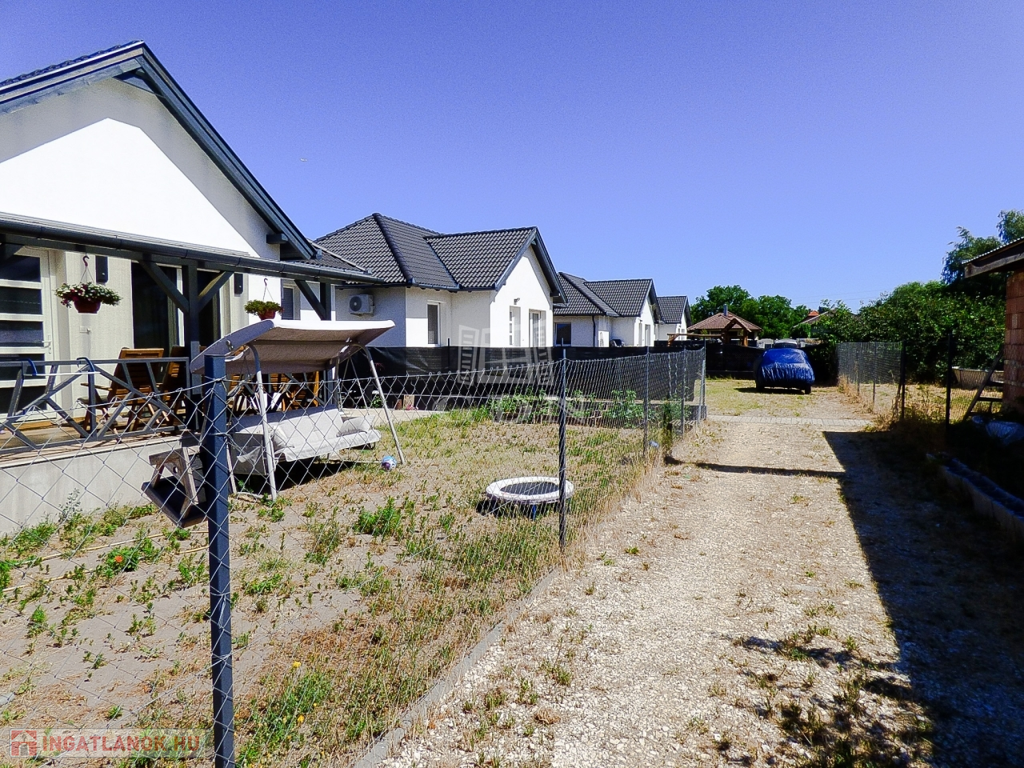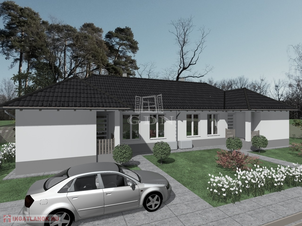Monor csendes, kertvárosias részén, cca. 400 nm-es telek területtel, Új építésű, 80 nm-es, 4 szobás (nappali + 3 hálószoba), egy szintes, hőszivattyús fűtéssel, Dél - Nyugati fekvésű, műanyag (3 rétegű) nyílászárós, szigetelt, fafödémes, új építésű ikerház fél eladó.