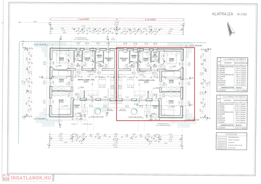 Az ingatlan 30 cm-es Porotherm X-therm okos téglából épül, 10 cm-es grafitos szigeteléssel, fa födémmel, beton cserép fedéssel.