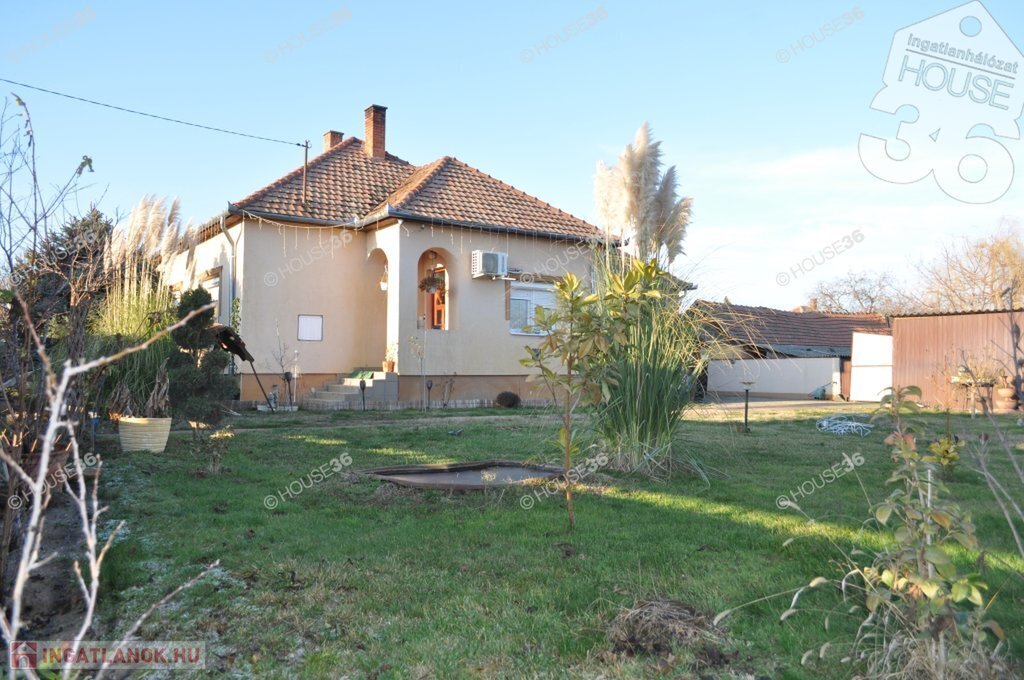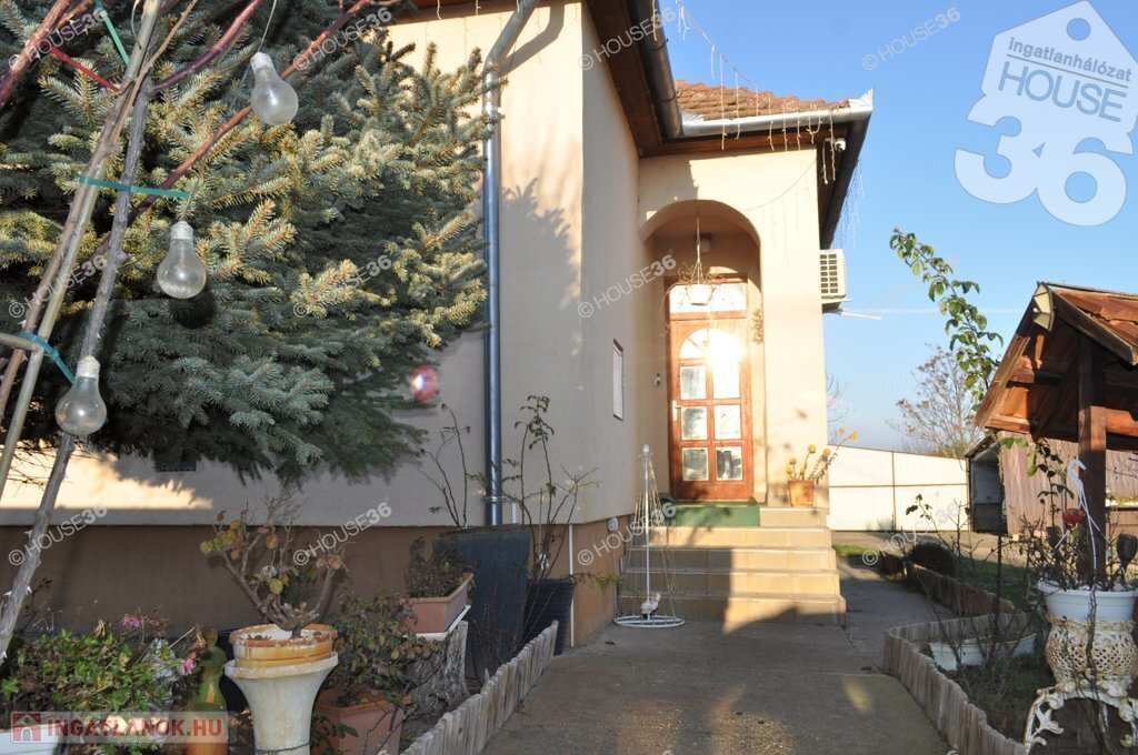 Kecskemét vonzáskörzetében a várostól csupán 15 perc távolságra Nyárlőrincen eladó családi ház nagy telekkel.