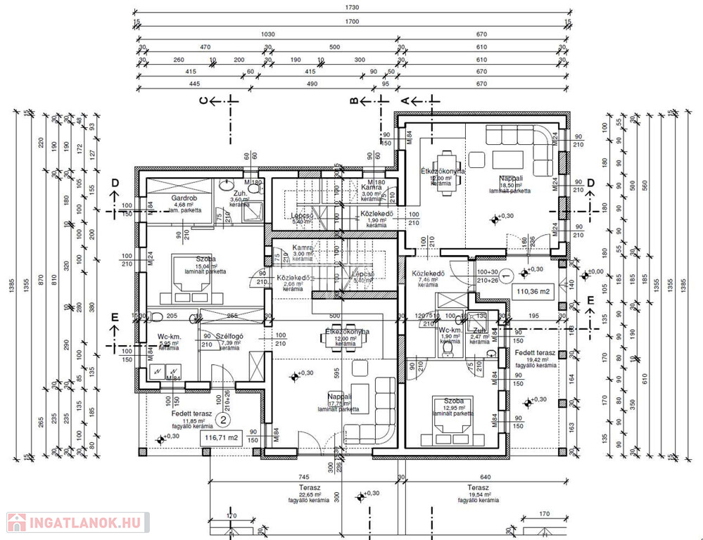 Nyíregyháza, Sóstóhegy csendes aszfaltozott utcájában új építésű iker ház lefoglalható az ingatlan jelenleg építés alatt van állnak a falak és rajta a beton koszorú. Az iker házak kicsit eltérő méretűek, 106 és 116 m2-s, három különnyíló szobás, amerikai konyha+étkező+nappali egy térben, fürdőszoba, zuhany+wc, külön wc, gardrob, kamra a földszinten burkolt 11 és 19 m2-s fedett terasz, emeleten 14 és 19 m2-s nyitott terasz található. Fűtése egyedi gáz+padlófűtés továbbá 3,5 KW-s Inverteres klíma, 7 légkamrás műanyag nyílászárós, Porotherm 30-as téglából épül, beton födémes, lapos szigetelt tetős, külsőleg 15 cm-s szigetelés. Mindkét házhoz tartozik szép kerítés és szilárd alappal ellátott gépkocsi beálló. A telek területe mind két háznak egyenként 500 m2. KÖLTÖZÉS SZERZŐDÉSTŐL MIN. 8 HÓNAP!