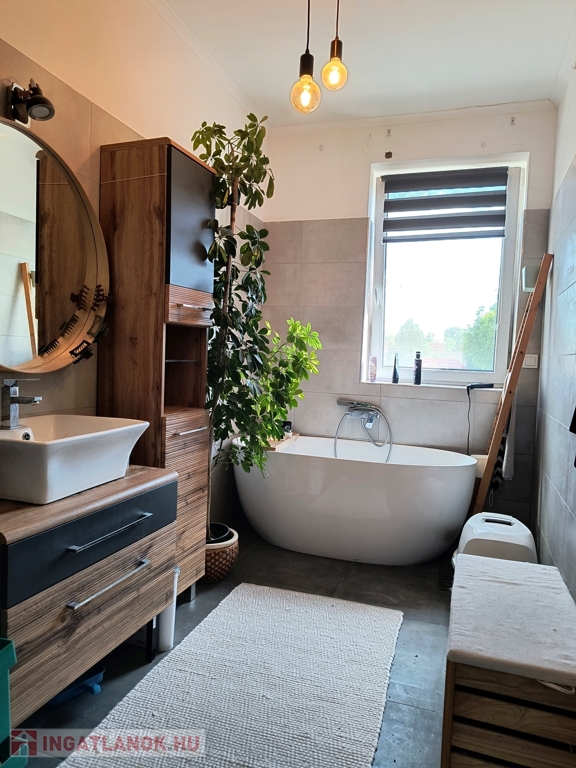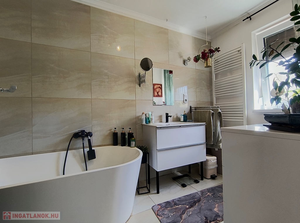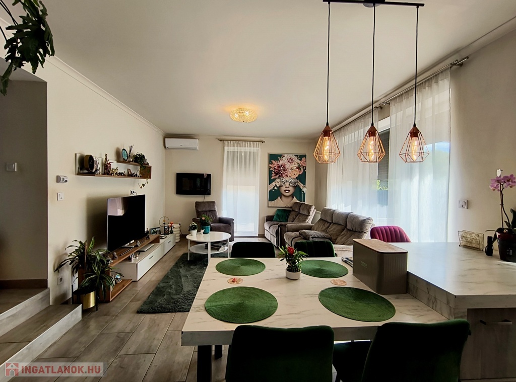 Nyíregyháza Belváros, Plázához közel, 2019 ben épült, 145 nm-es, 4 szoba + Nappali étkező konyha egy légtérben, 2 fürdő és 2 wc, gardróbszoba 2 db terasz, járólap és laminált parketta burkolattal, egyedi gázfűtéses kondenzációs gázkazánnal, 3 réteg üvegezésű műanyag nyílászárókkal redőnyözve, 3 db inverteres klímával, 15 cm-es grafitos homlokzati szigeteléssel ellátott ikerház, részben térkövezett 552 nm-es telken, 28 nm-es átmenő automata szekcionált kapuval ellátott garázzsal eladó.