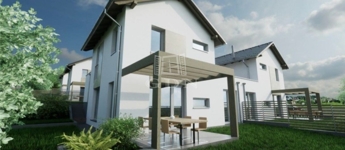 Az új építésű lakóparki ikerház várhatóan 8 hónapon belül kerül átadásra, mely korszerű hő takarékos építészeti megoldásokat alkalmazva készül el. A falazata 30-as téglából épül, mely 15 cm-es EPS homlokzati hőszigetelést kap. A födém szerkezete 15 cm-es ásványszálas hőszigetelésű lesz, így az egész épület energetikai szempontból A++ kategóriájú.